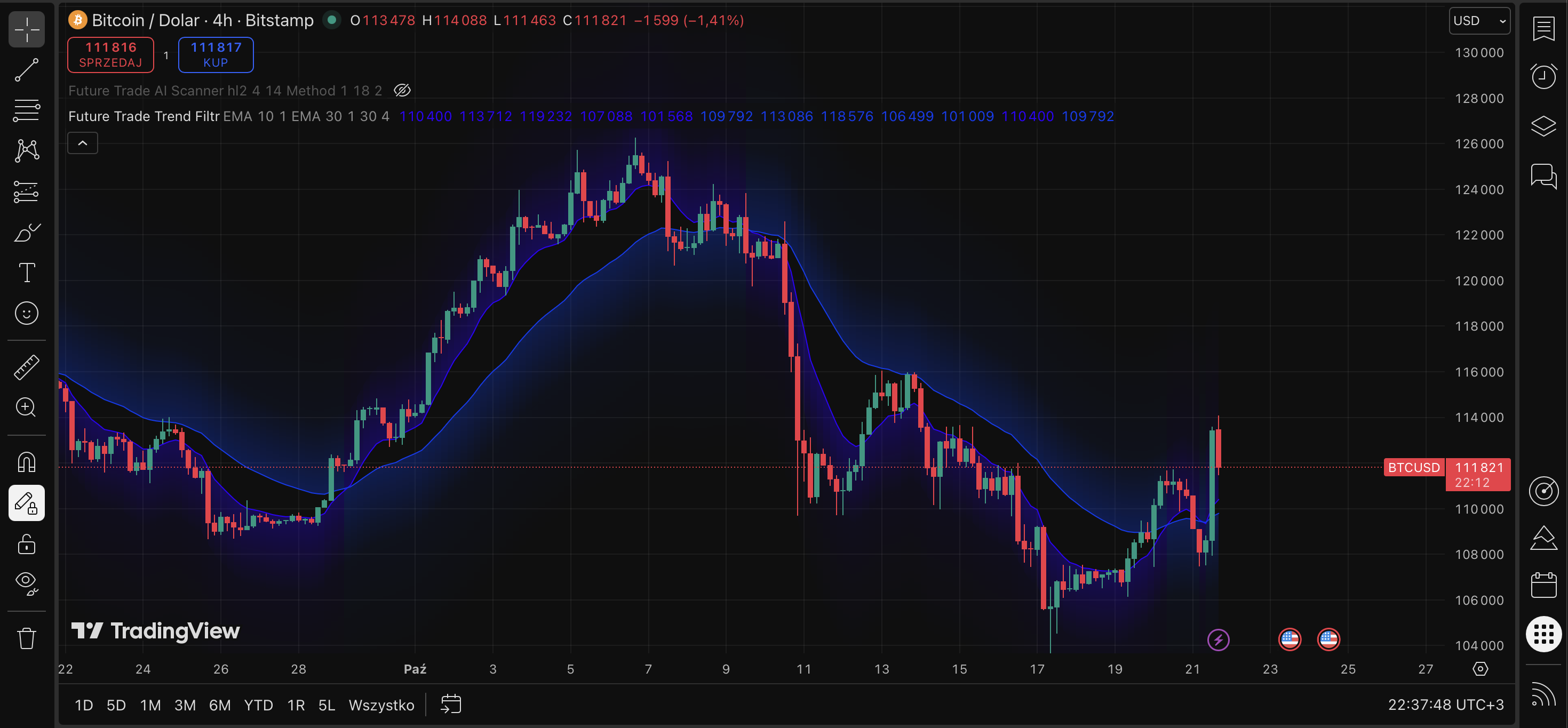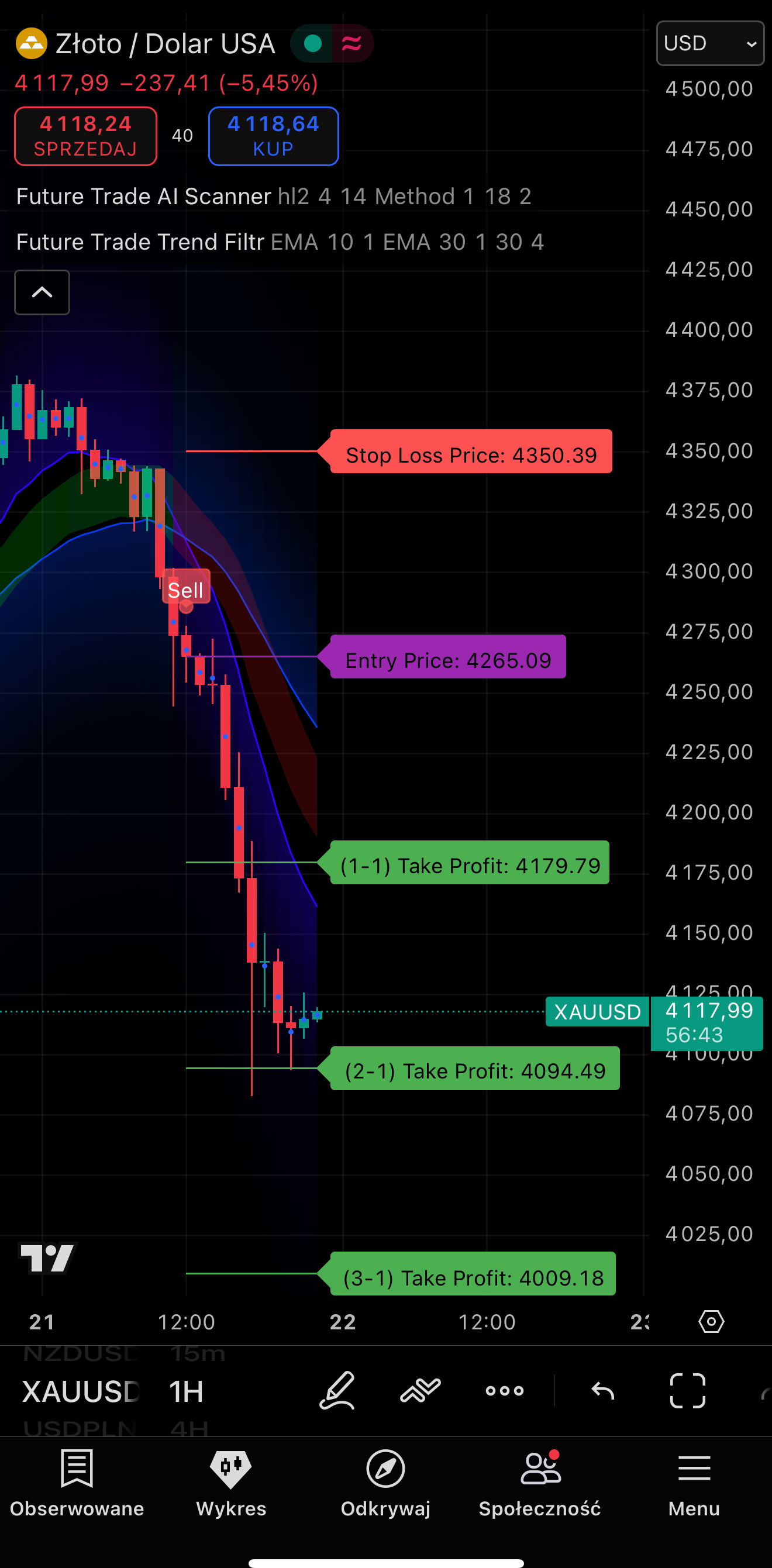 Jak widzisz na zdjęciu, wyświetlił się sygnał SELL (czyli zagranie pozycji spadkowej)